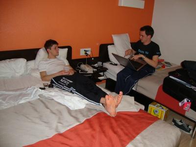 Wie unschwer zu erkennen ist, hielt das Zimmer nur zwei Betten für uns bereit. Wer von uns sich ein Bett teilen durfte, bleibt an dieser Stelle vorsichtshalber unerwähnt ... :-)