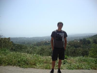 Tom der alte Poser präsentiert den wunderbaren Ausblick, der sich vor den Toren der Uni offenbart.