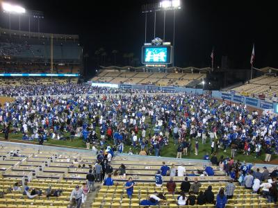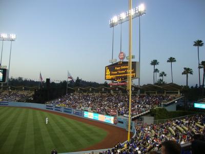 Leider konnten wir nicht bis in die Nacht hinein warten, da wir bereits Karten für ein Baseballspiel der Los Angeles Dodgers reserviert hatten. Das Spiel an sich dauerte schlussendlich über 3 Stunden und die Stimmung im Stadion war dementsprechend aufgeheizt, als die Dodgers mit dem letzten Schlag 6:5 das Spiel für sich entschieden. Dass Sport hier einen besonderen Stellenwert hat war mir schon immer bewusst. Aber dass zu jedem Ligaspiel ein anderer Sänger eingeladen wird, um die Nationalhymne zu singen, bei der sich 40.000 Mann im Stadion stolz erheben, naja... Man kanns auch übertreiben... Danach gabs dann aufgrund des 50-jährigen Jubiläums sogar noch ein Feuerwerk, und alle gingen glücklich und zufrieden nach Hause ...
