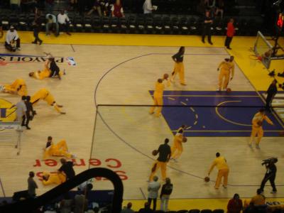 Aufgrund des Jahrhundertspiels ließen wir am Samstag nichts anbrennen und verbrachten den frühen Nachmittag vor dem Fernseher, in der Hoffung bald einen deutschen Championsleague-Sieger feiern zu dürfen. Nach enttäuschenden zwei Stunden ging es dann aber trotzdem voller Vorfreude ab nach Downtown, wo die Los Angeles Lakers ein entscheidendes Playoff-Spiel bestritten. Es wurde uns eine geniale Show geboten, im Rampenlicht ein überragender Kobe Bryant, der die Halle mit über 20.000 Lakers Fans zum Beben brachte. Trotz eines 10 Punkte Vorsprungs über das gesamte Spiel hinweg, ging das Spiel aufgrund einer schwachen Schlussphase mit 100:103 verloren. Das Spiel an sich war allerdings wirklich sehenswert, und mit deutschem Basketball überhaupt nicht zu vergleichen. Dementsprechend hatte nach zweieinhalb Stunden meine Stimme zu leiden. Mit zwei Niederlagen im Gepäck ging es also an diesem Abend nach Hause zu Ted und Berta ...